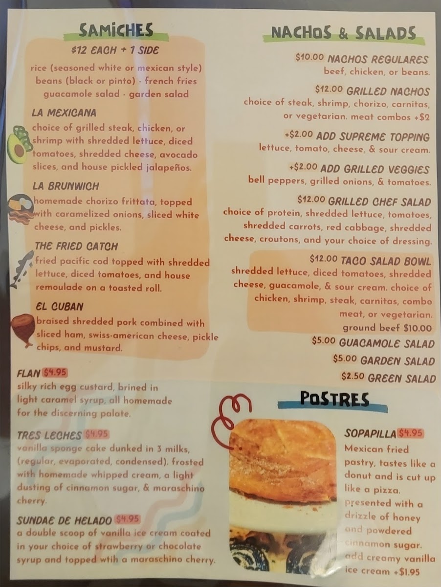 Prepared with your choice of protein, toppings, and a side. Served with chips and salsa.