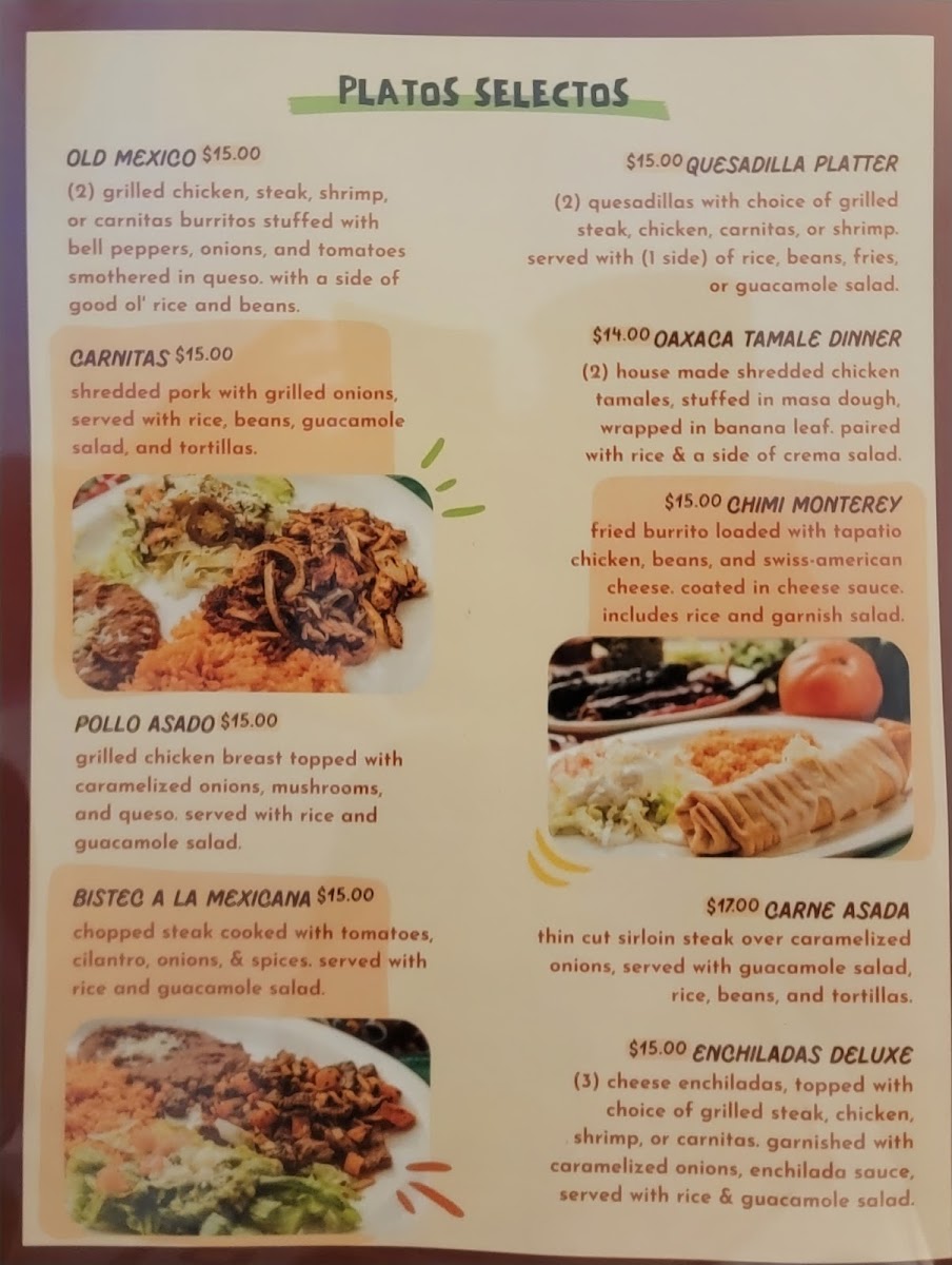 (3) cheese enchiladas. Topped with your choice of protein, caramelized onions, and enchilada sauce. Served with rice and guacamole salad.